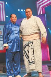 1米8、95公斤的王战军,对抗2米03、223公斤的曙太郎。王战军说,有种石头砸大山的感觉,身材力量差距太大。终于,在多次试探之后,王战军利用太极的借力——“四两拨千斤”,将对手强大的推力化解,曙太郎顿时失去重心倒地,从而赢得比赛。