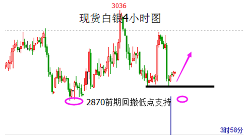 现货白银可参考策略:白银价格2900附近进场多单,损270,目标看2940-60破位持有即可!(撰稿人:萧熙宇)