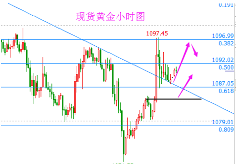 现货黄金可参考策略:周五晚间最后1088-87多单,早间可以在1092-93一带先行获利离场,回踩1084一带可再次进多,损1080下方,目标看1089-93破位持有;上方首次触及1096-97一带可短空,损1101,目标看1093-1088即可。
