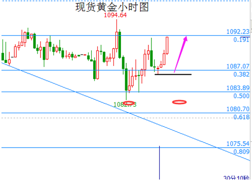现货黄金早间可参考策略:昨日1083-84多单继续持有,看至1092-93一带破位持有,空仓的朋友回撤1086-87一带可继续补仓进多,损放在1082即可。