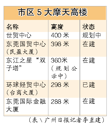 记者了解到,这栋280米的摩天大厦工程早已动工,标识为“东江之星工程”,据称为“双子塔”造型。大厦由两座地下3层、地上52层、高度为280米的双子塔及9栋高层住宅楼组成,集甲级写字楼、商业、住宅为一体的城市综合体,建成后将成为东莞万江区及鸿福路商圈新的地标。