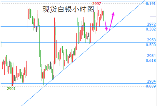 现货白银欧盘可参考策略:白银价格下方2960一带进场多单,损2930,目标看3000关口一带,破位持有。