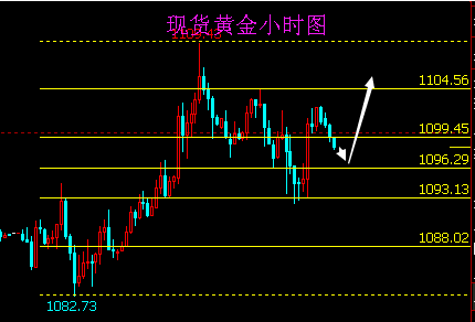 现货黄金早间可参考策略:黄金价格下方1096一带多单进场,损1092,目标看1103-1108破位持有。