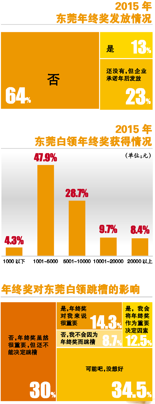 岁末总结付出和收获的时候,年终奖往往是最甜蜜的憧憬。2015年年中时,智联招聘进行的白领跳槽指数调查结果发现,白领们对自己的年终奖信心较低,许多白领在秋季均有跳槽打算。半年时间过去,东莞有多少白领有年终奖?