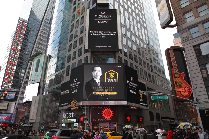 2016年1月30日,中国领先的自营式家居电商平台美乐乐携对千家万户“家+美乐乐”的美好祝愿,全新亮相纽约时代广场。在这个“世界的十字路口”和全球财富与文化的交汇地,美乐乐以新春祝福为契机,向世界宣布”美乐乐全球伙伴计划”正式启动。