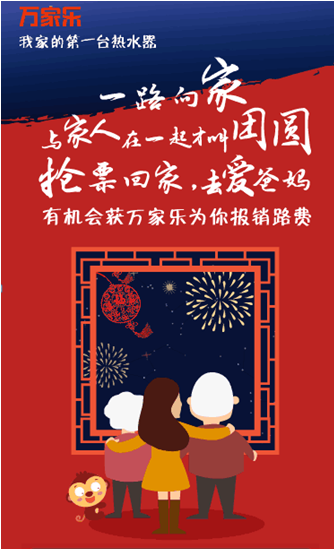 “陪伴”太广义,具体而言可以是聊天、帮忙做家务、奉上一顿美味佳肴,不一而足。值此之际,万家乐想出了一个既传递孝心,又让大家脑洞大开的idea。那就是1月21日-2月15日,万家乐在官方微博与微信上发起的#不凡回家路——互动抢票·去爱爸妈#话题活动。