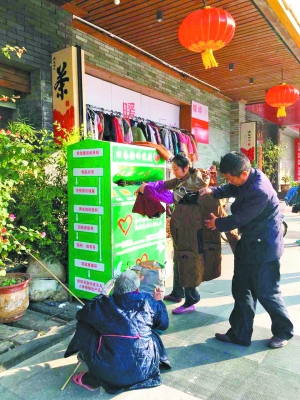 整个春节期间,龙大叔都在“暖墙”当值,有人送来了衣物,他就帮着收拾并分类。他指着架上一件白衬衣和一件外套说,“这些都是我早上整理时没有的,好心人自己拿衣架挂上去的”。