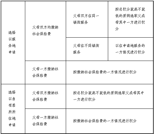第五条、本方案中的“申请人”(即学生)选取父或母一方作为“积分方”进行积分,父母双方不交叉或累计积分,积分方式如下: