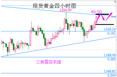 现货黄金早间可参考策略:黄金价格下方1236一带做多,损32,目标看1242-45破位持有新高;上方首次触及49-50可空。