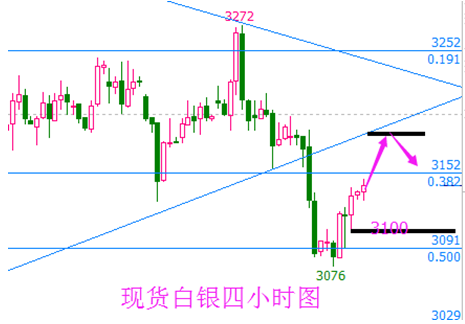 现货白银昨日再次震荡收阳,月线上来讲再次收小阳,对于多头来讲还算尚好,短周期调整之后,呈现多头反抽,昨日受黄金带动,晚间小涨,今日来讲,空头受阻,遭遇支撑,我之前讲道过白银短线回撤之后,中线多头再次开启,我们暂定进场位置在3050-3030而昨日,却没有给到位置。今日行情我们做震荡处理,上方压制3180一带,触及短空,下方支撑3100一带触及可多。
