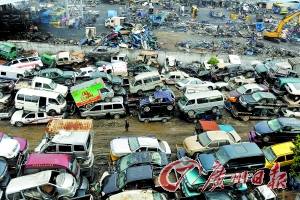 这里是东城莞温路上的东莞市物资再生利用有限公司,东莞绝大多数的报废车辆都会回收到这里。对于一个有着很高的汽车保有量的城市,这里承担着很重的汽车回收任务。