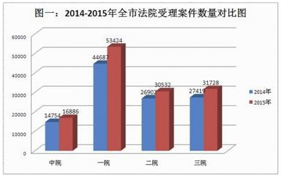 2015年,在市委领导和市人大监督、市政府及社会各界的大力支持下,全市法院深入学习贯彻上级各项要求和部署,紧紧围绕我市工作大局,进一步全面加强各项审判执行工作,深入推进司法工作改革,狠抓班子队伍建设,推动全市法院工作取得了新发展、新成效。办结案件数再创历史新高,全年全市法院共受理各类案件132570件,办结113604件,解决诉讼标的金额368.68亿元,分别比上年增长了16.53%、10.41%和66.09%;其中市中院受理案件16886件,办结14642件,解决诉讼标的金额91.85亿元,同比分别增长了14.45%、8.98%和98.25%。司法改革稳步推进,我市法院在全省率先开展的人民法庭审判权运行机制改革、组建新型独立合议庭、健全法官办案绩效管理制度等,受到了上级法院的充分肯定。班子队伍建设深入发展,全年全市法院共有59个集体、111名干警受到市级以上表彰奖励,第一法院被评为全国模范法院,第三法院被评为全国优秀法院,市中院刑二庭、司法警察支队被评为全国法院先进集体,第二法院在全国司法体制改革研讨会上介绍了经验。