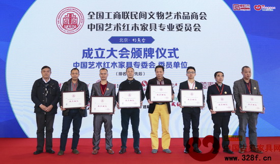清艺居红木当选全联艺术红木家具专委会委员单位,董事长李裕青(左二)上台接受颁牌