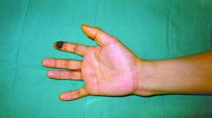 今年2月18日,一名30多岁的女患者何洁到康华医院就诊,她的右手食指上长着一个黑色的肿块,黑色肿块中间还有破损并有液体流出。何洁告诉医生,大概是一年前,她发现自己的右手食指顶部长了个芝麻大小的黑痣一样的小肿块,一开始以为没什么事,谁知道肿块越来越大。