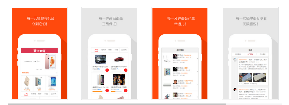 现在使用APP购物已经成流行了吧?我的手机里有很多购物软件,淘宝、各大品牌的APP等等。最近超想入手The new Macbook,无奈价格小一万元呢!扫兴之际,朋友说何不去玩竞玩夺宝?