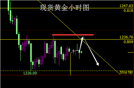 现货黄金早间可参考策略:黄金价格1237-38空,损1243,目标看1230-26破位持有;