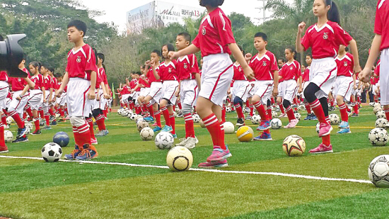 “去年以来,塘厦镇斥资200万元改建塘厦第三小学足球场。”据塘厦镇相关负责人介绍,塘厦镇还将成立校园足球工作领导小组,落实师资培训、全镇联赛、足球训练营以及学校开展课堂教学、开办兴趣小组和举行校内比赛所需专项经费,并探索以奖励配套资金的方式鼓励民办学校建设标准足球场,确保公办中小学每周安排不少于1小时以足球为主要内容的体育活动。