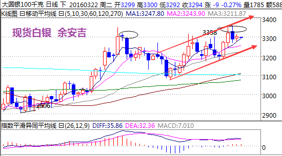 白银价格上行试探上方3350附近后逐步震荡回落,上行动能略显不足,然价格保持在上行通道中,从日线级别收线来看,价格短期内存在持续回落修正指标,笔者余安吉建议下方留意3250及3220附近重要支撑位,上方关注3330-3350附近压制,整体以高位震荡运行看待,操作上余安吉建议在3230-3340区间内高抛低吸。