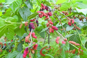 昨日在该果园的桑田区,紫红的桑果挂满枝头,非常诱人,桑果的酸甜滋味让人神清气爽。