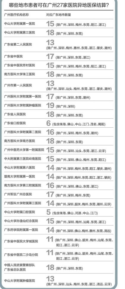 目前在省内异地就医直接结算系统上线的71家医院中,广州最多,达到27家。其它城市的上线医院基本在1-4家。