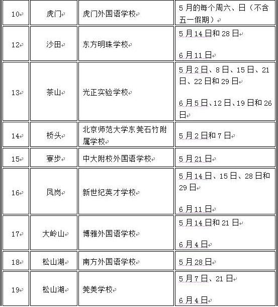 而广大家长关注的东华初级中学、光明中学、翰林实验学校、南开实验学校、宏远外国语学校、御花园外国语学校、尚城学校、粤华学校、黄冈理想学校、虎门外国语学校、东方明珠学校、光正实验学校、北京师范大学东莞石竹附属学校、中大附校外国语学校、新世纪英才学校、博雅外国语学校、南方外国语学校、莞美学校18所高收费民办学校小升初的面谈时间安排在2016年5月-6月的节假日、周六或周日。