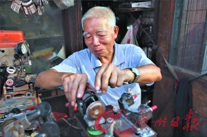 成伯代步的小四轮也是他自己的杰作,走在街上很拉风,回头率很高。别以为店子老了跟不上新时代,但成伯对配制新型的电子钥匙仍然游刃有余。