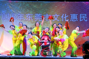 本月7日晚,企石镇举办今年首场文化惠民文艺演出,一支大妈舞蹈队带来的节目备受好评。带有故事情节的舞蹈《幸福像花儿一样》时长约6分钟,她们手拿彩帕,在舞台上灵活地展现各种形态,跳跃、盘腿、变换队形……引来台下阵阵喝彩。