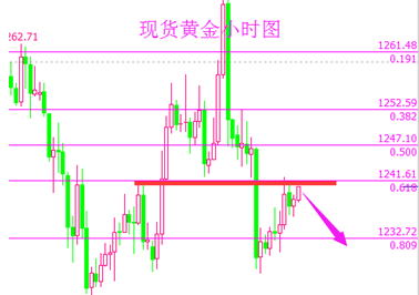 现货黄金可参考策略:黄金价格现价1239-40空单进场,损1245,目标看1235-32破位持有即可!