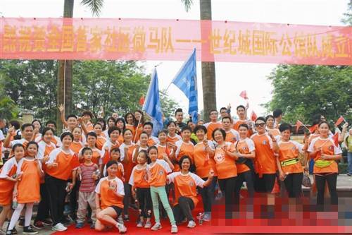 继全国首支高校微马队成立后,东莞微马再创纪录。4月24日上午,世纪城国际公馆大门广场早已人潮涌动,形成一片“橙色海洋”,500多名该社区的街坊邻居齐聚一堂,见证全国首支社区微马队——世纪城国际公馆队的成立。南城宏图社区书记黃天华、南城体委主任刘志敏以及市微马跑步协会会长李正雪等嘉宾出席了活动。