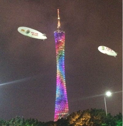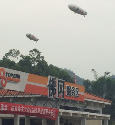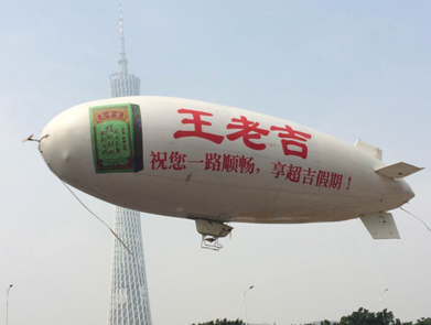 另外,五一期间,在佛冈高速收费站、广州花城广场多地,出游的市民们随时可见印有“王老吉”字样的飞艇从高空中飞过,夜晚的珠江边上更是可以欣赏到会“发光”的飞艇。王老吉的飞艇“巡游”,也为五一出游者献上“飞”一样的祝福,增添节庆欢乐。
