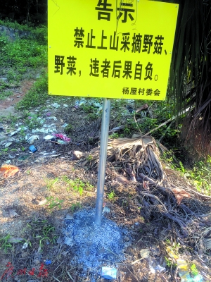 昨天下午,记者探访发现,出事的大岭山杨屋村马鞍山已经竖立了多块警示牌,“禁止上山采摘蘑菇、野菜,违者后果自负”;而中毒的5人同属一家小五金加工作坊,该作坊只有他们5个工人,目前该作坊也已关门。