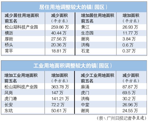 27个镇(园区)的总规修改涉及130多个项目和150多个地块的调整,共减少居住用地超过433万平方米。其中有18个镇(园区)减少居住用地,面积共476.77万平方米。松山湖科技产业园减少居住用地面积最多,将近260万平方米。