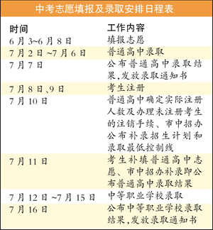 根据市中招办的安排,今年中考志愿填报及确认时间为6月3日至6月8日。在具体填报时,今年全市统一实行网上填报志愿,实现档案电子化。考生可自行上网填报志愿,也可在学校有关人员的指导下集中进行网上填报志愿。