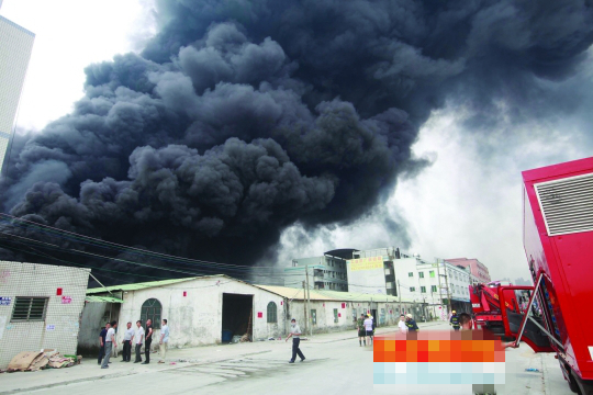 昨日上午,记者赶赴现场时,远在五六公里外,就能看到滚滚浓烟腾空而起。抵达现场时,还能闻到刺鼻的烧焦气味。“燃烧的全是塑胶等电子以及化工原料,产生的浓烟有毒,提醒我们的队员在灭火时,一定要戴好口罩。”一位指挥模样的消防军官一边急切地走着,一边提醒身旁的消防员。另一旁,道滘警方也紧急疏散了附近几栋厂房里的人。