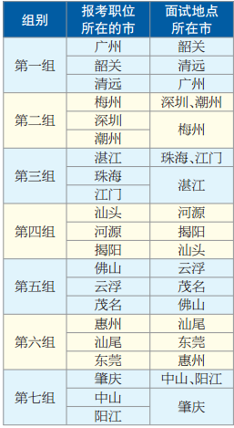 根据《考生异地面试办法》,广东省2016年考试录用公务员面试分七组进行,其中报考职位在东莞市的考生,则需要到惠州接受面试。报考职位在广东省其他地市的考生,请查阅《考生异地面试办法》。