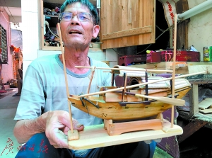 桂叔把客厅里最小的那只虾船模型取下,对记者说,在他制作的这些船模中,这艘最珍贵。