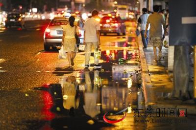 昨晚,受强台风“尤特”影响,东莞普降小到中雨。南城鸿福路,市民趁雨停间隙逛街(记者 陈栋 摄)