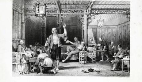 外国画家画出鸦片烟馆的衰败场景