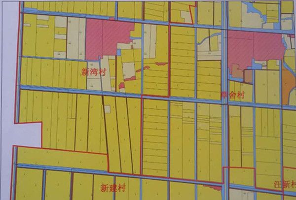 新湾村、草舍村和新建村的4000亩基本农田地籍图(2016年6月)殷成进供图