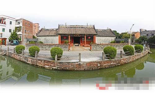 6月15日上午,在中堂潢涌村,记者看到河水蜿蜒环绕,沿河保留有较为完整的古建筑群,形成有一定规模的岭南水乡古村落。潢涌村在汇报中说,目前保存完好的宗祠、家庙、府第超过20座,建有上文塔、下文塔、双门邸、北帝宫等古建筑。2004年,黎氏大宗祠定名“潢涌宋祠”并入选“东莞文物八景”。