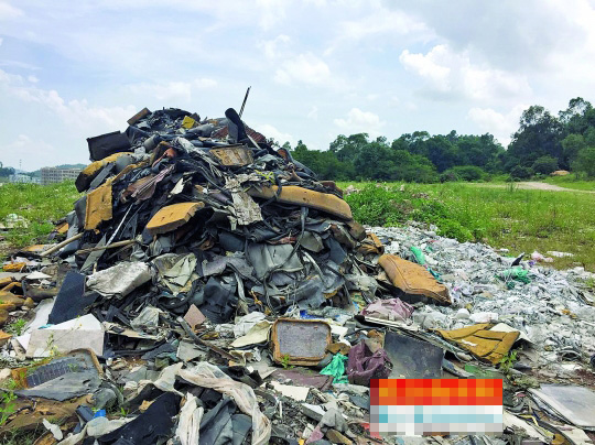 E常平朗贝:废弃垃圾易燃物 堆放在石油气库后方