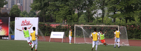 在绿茵场上,足球少将们英姿飒爽、奋博拼劲,吸引了大批粉丝前来呐喊助威,使这个闷热的夏天充满了热情的拼劲。来吧!让我们一起在这个夏天为校园足球呐喊吧!
