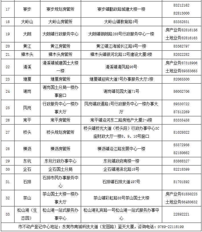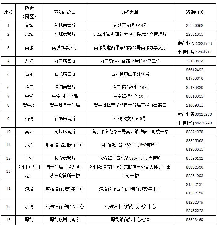 东莞33镇街(园区)不动产登记窗口和电话出炉
