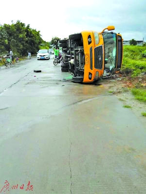 昨天,记者来到事故现场时看到,事发地段属于乡间道路,翻车地点离一转弯处约20米,弯度约30度,路面是新修的,路况良好。