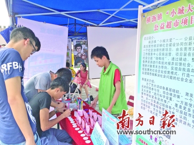 15个展位组成了横沥镇公益超市联盟展示区,成员商家现场向市民提供试吃、手工艺制作、按摩体验等服务。活动通过公益超市项目的爱心捐赠牌以及公益认购牌进行展示,收集社会各类资源的捐赠并接受社会群众的服务申请。