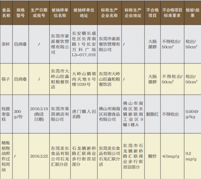 食品餐饮服务环节监督抽检不合格产品信息(第一期)