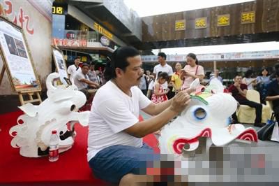 现场,不少市民也体验了一把传统工艺,比如麒麟制作,分为麒麟头、麒麟被、尾三大部分,现场由传承人黄鹤林展示技艺并教学,市民体验糊裱、绘画等麒麟头制作过程,共同感受传统文化的博大精深。