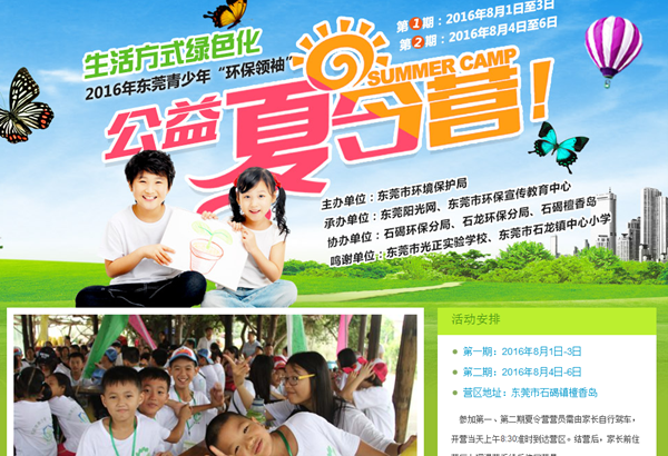 环保夏令营活动由东莞市环保局主办,东莞阳光网以及市环保宣传教育中心承办,并获得石碣环保分局、石龙环保分局、石碣檀香岛、东莞市光正实验学校、石龙镇中心小学等多部门、机构的协助。