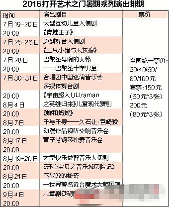 目前,“2016打开艺术之门”暑期系列演出已全面开始售票,观众可通过东莞玉兰大剧院售票处、官方网站或关注微信公众号在线选座等多种方式购票。