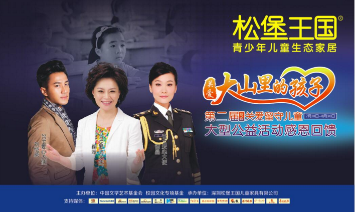 用爱心回报社会是企业的社会责任。作为独具特色的儿童家具企业,松堡王国时刻关注孩子的健康成长。松堡王国作为爱心企业联合中国文学艺术基金会在2014和2015年暑假,为“关爱留守儿童公益行”提供全程的赞助,为更多的留守儿童送去爱心与温暖。